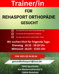 Wir suchen Rehasport Trainer/Trainerinnen für nachmittags (16.00/18.15 Uhr)