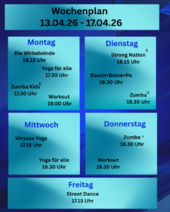 Wochenplan Fitness (Sporthalle) 13.04. – 17.04.26